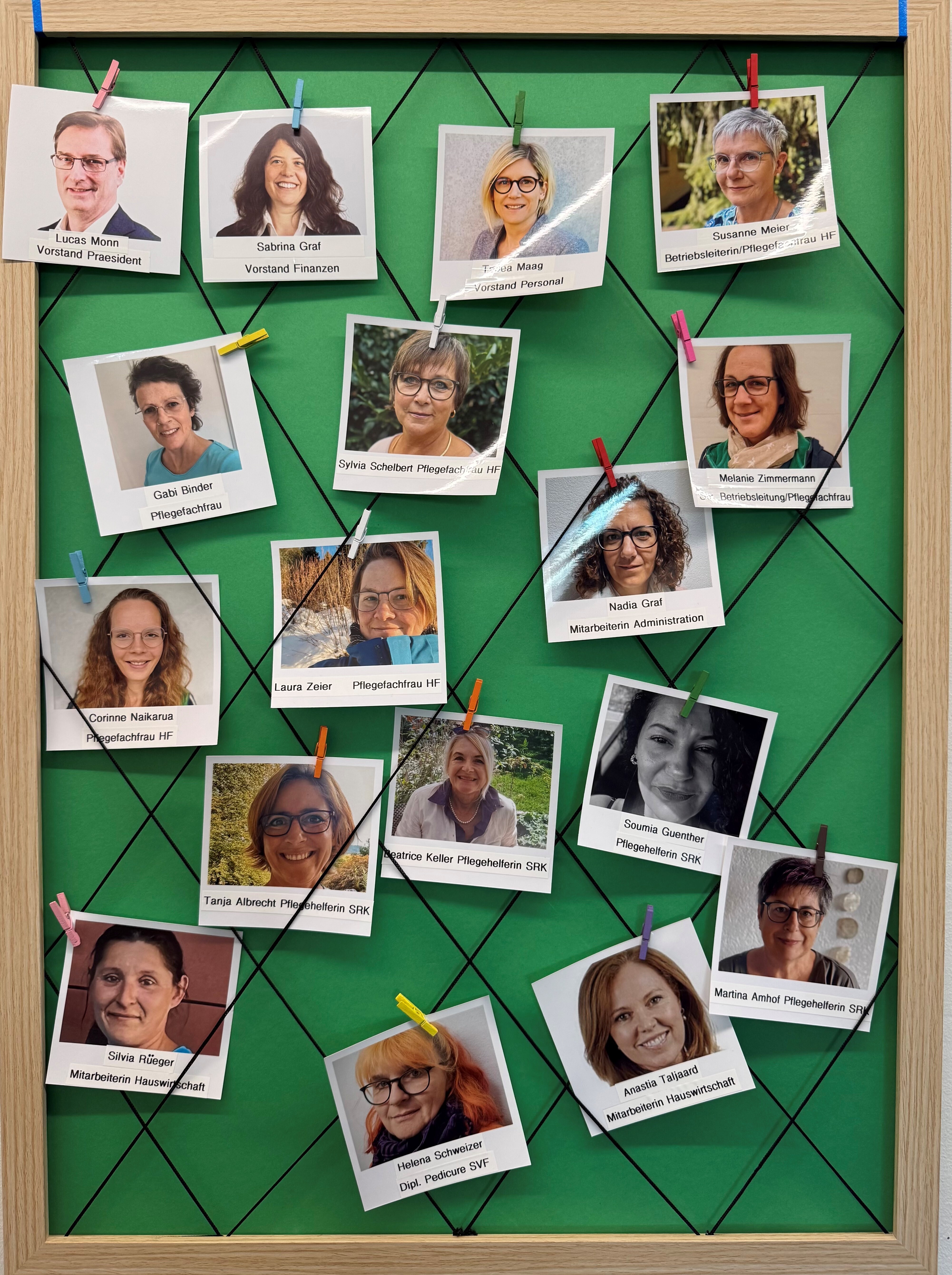 besteht aus der Betriebsleiterin, einer Mitarbeiterin in der Administration, sowie mehreren Mitarbeitenden im Bereich Krankenpflege und Hauswirtschaft.